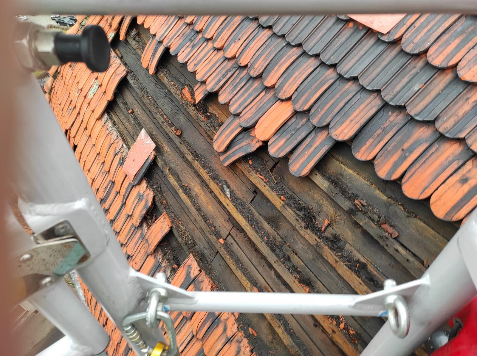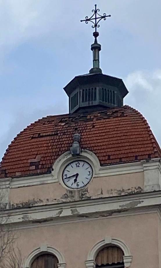 Wiatr zerwał wówczas ok. 15m2 dachówek, które spadając uszkodziły główny korpus kościoła. Niestety podczas oględzin i zabezpieczania przez Straż Pożarną okazało się, że odeskowanie (przede wszystkim łaty) są w bardzo złym stanie.